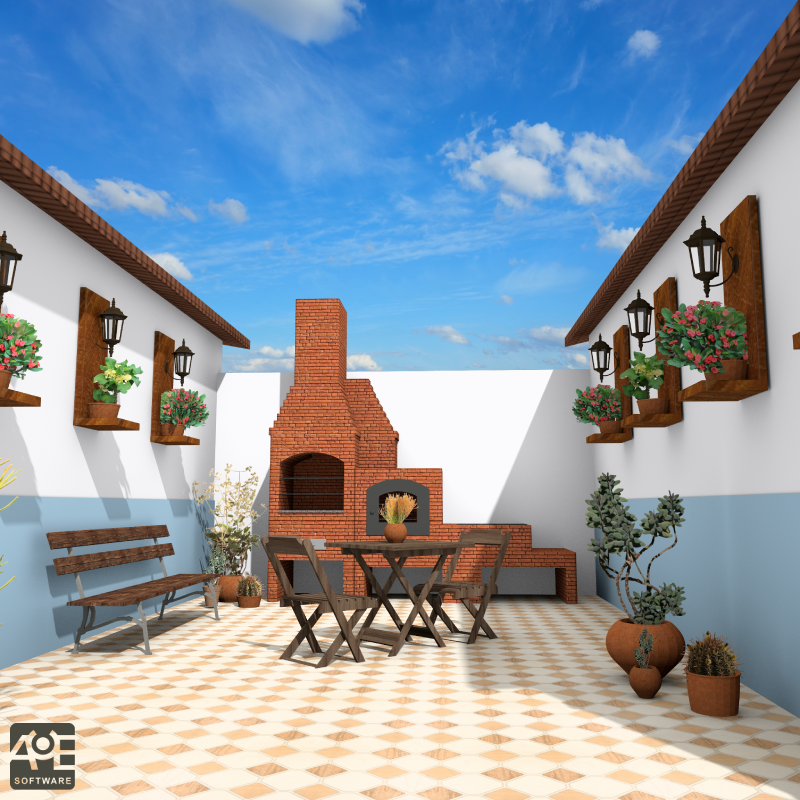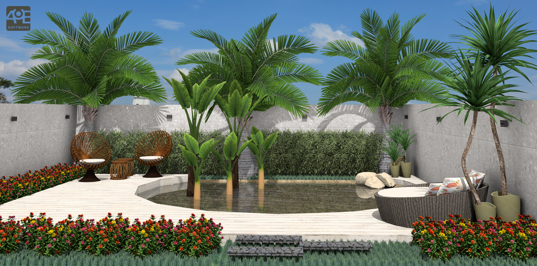 Ejemplo Colección: Rincón tropical con terraza y espejo de agua